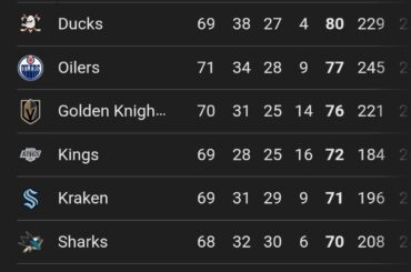 Heureusement, les Oilers, les Kings, les Sharks et le Kraken ne parviennent pas non plus à gagner des points aujourd’hui…