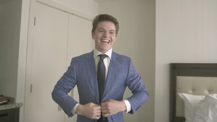 En toute sécurité, @colecaufield était enthousiasmé par le #NHLDraft, ainsi que par son costume! 🤣