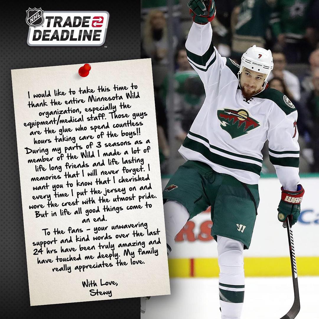 LNH: Chris Stewart fait ses adieux au @MinnesotaWild. #nhltradedeadline …