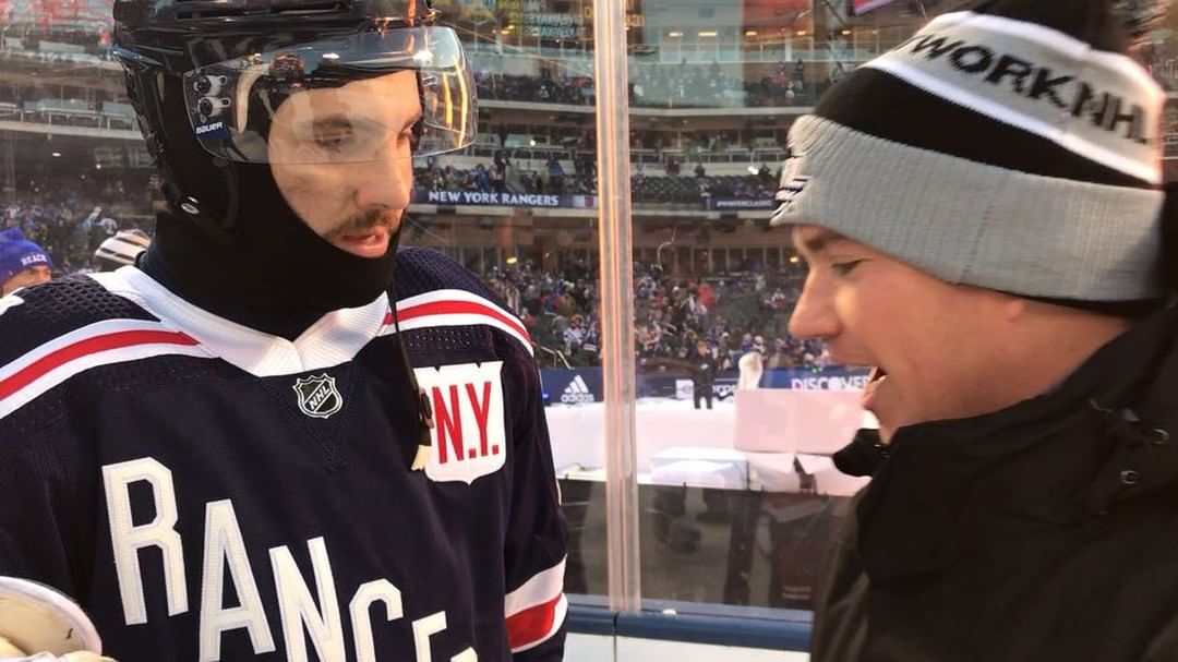 Kevin Shattenkirk et @jamisoncoyle de @nhlnetwork discutent d'une victoire froide des #WinterClassic pour les @NYRangers et @shattdeuces crie tous les fans de #NYR à Citi Field.