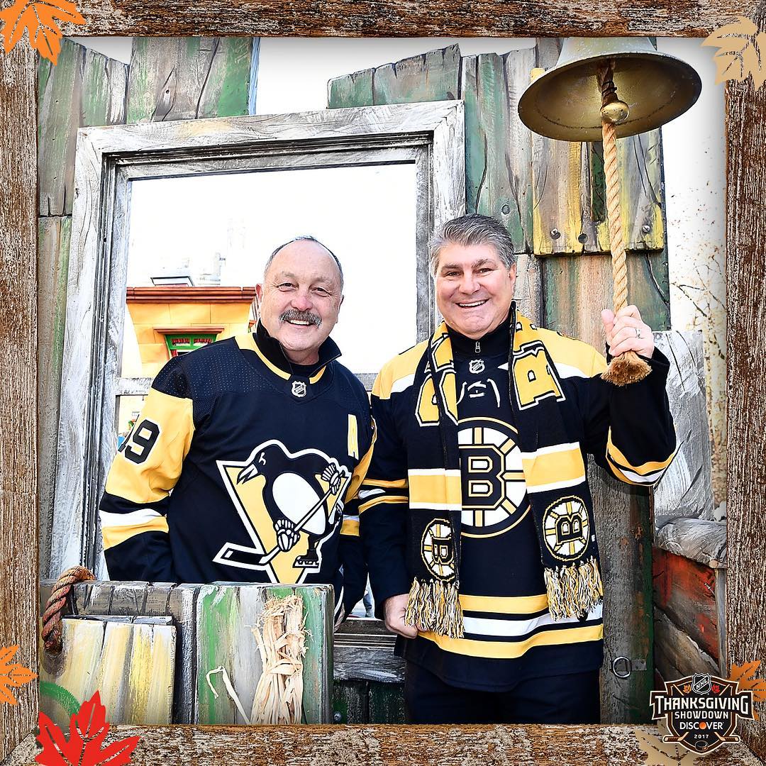 Légendes du # NHL100, Bryan Trottier et Ray Bourque se sont joints au groupe lors du défilé officiel de la Ligue lors du défilé de Macy’s Thanksgiving Day. Les @nhlbruins et les @penguins s'affronteront vendredi dans le #ThanksgivingShowdown à 13 h HE sur NBC