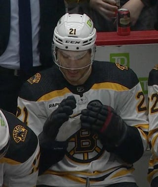 Garnet Hathaway voulait garder ses gants cassés, alors il a peint à la bombe ses gants rouges des Capitals pour son premier match en tant que Bruin