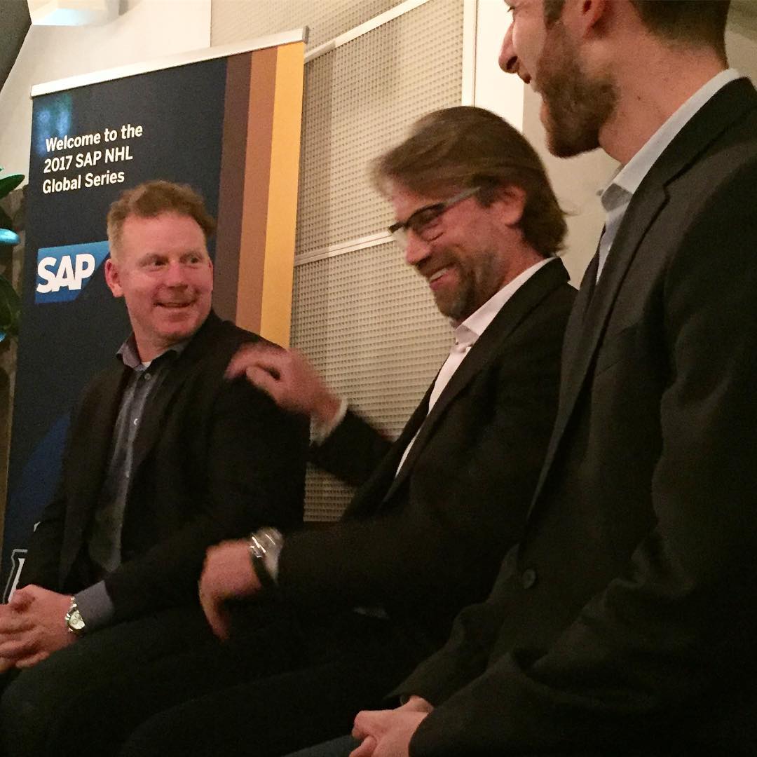 Lors d'une conversation avec les grands joueurs de la LNH, Daniel Alfredsson et Peter Forsberg, un fan de l'auditoire veut savoir: