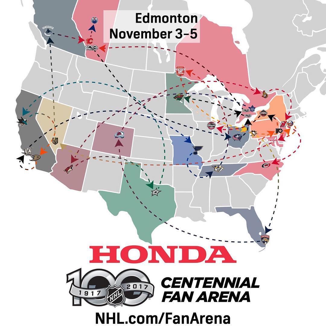 Nous sommes profondément engagés dans le voyage d'un an de la LNH100 Fan Arena vers toutes les villes de la LNH.