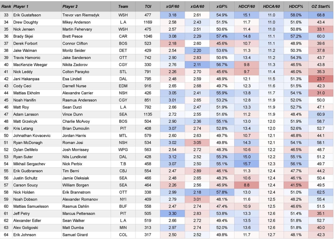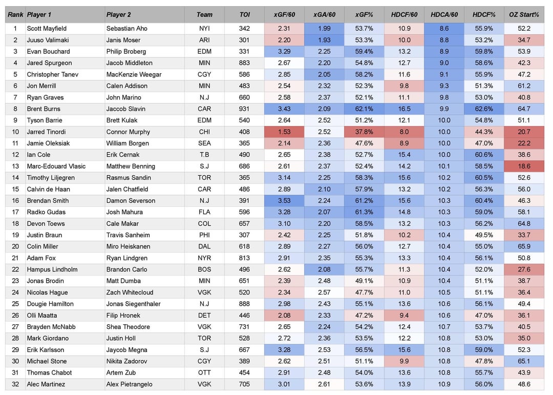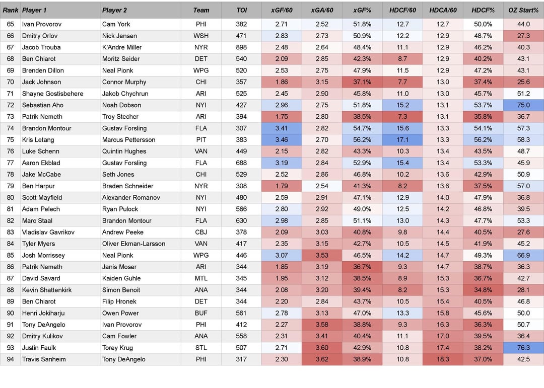 A lot of these pairings just get a lot of ice time.