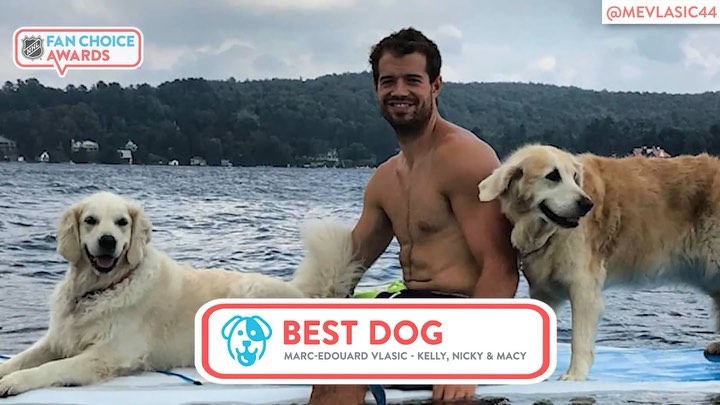 La première ligne de @ mevlasic44, Kelly, Nicky et Macy, présente de beaux doggos, mais sont-ils les meilleurs chiens de la ligue? 🐶 VOTEZ EN BIO #NHLFanChoice