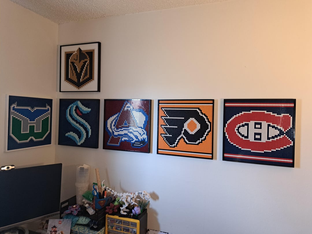 Artiste LEGO travaillant sur les 32 logos principaux de la LNH, les rétros et d’autres trucs amusants aléatoires.