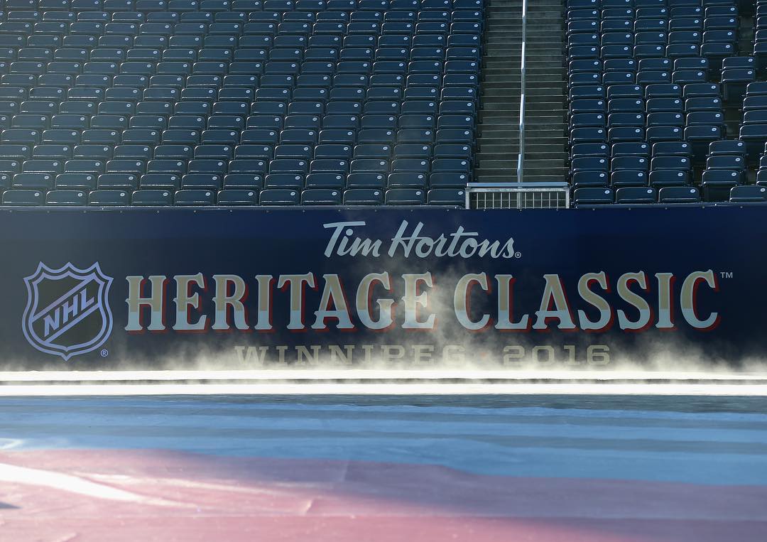 Les @edmontonoilers et @nhljets s'affrontent dans les @timhortons de la LNH #HeritageClassic aujourd'hui au Groupe Investors Field (à 15 h, heure de New York, SN, TVA Sports 2).