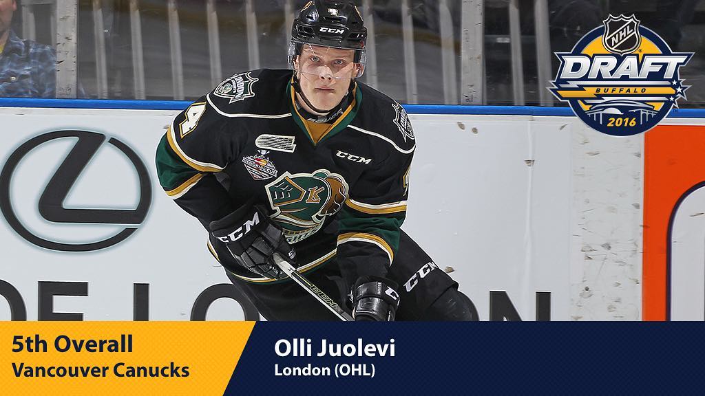 Avec le cinquième choix dans le #NHLDraft 2016, les @canucks sélectionnent Olli Juolevi. HockeyHockey sur glaceHockeySurGlaceIce HockeyIceHockeyLA LNHLALNHLigue nationale de hockeyLigueNationaleDeHockeyLNHNational Hockey LeagueNationalHockeyLeagueNHLNHLDraft