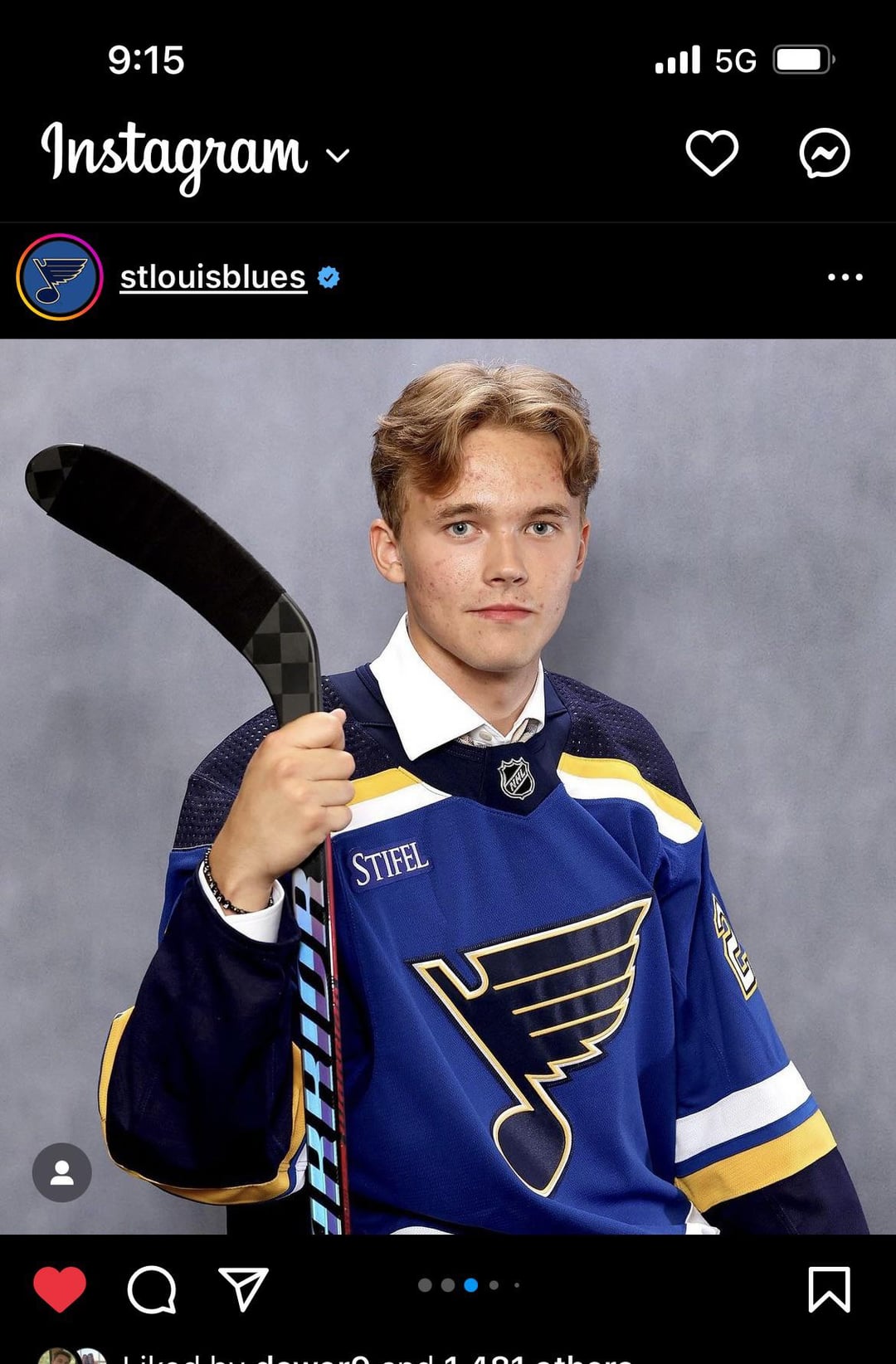 Le 29e choix des Blues OA, Theo Lindstein, portait un bracelet sur sa photo de repêchage officielle avec un message intéressant