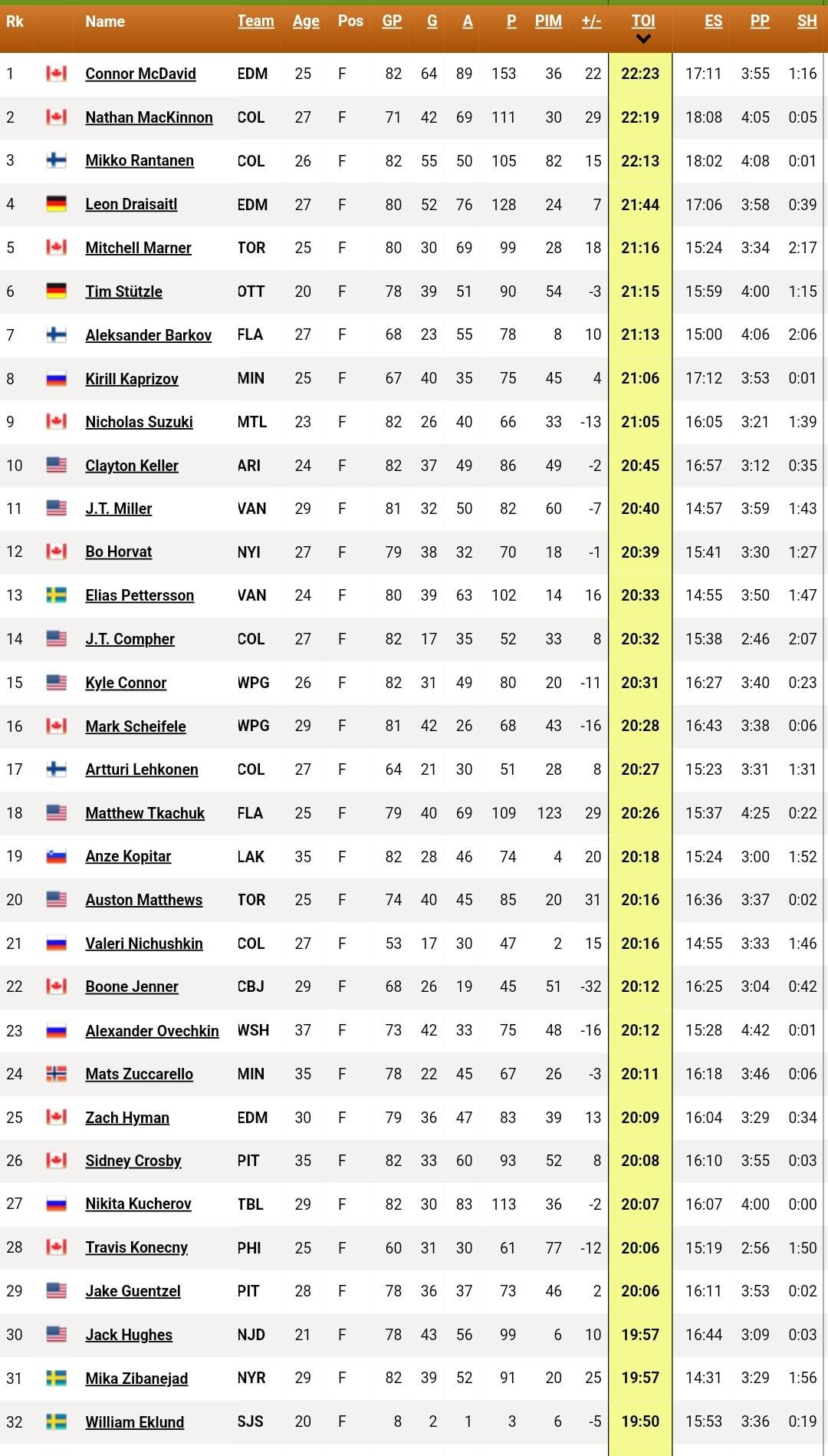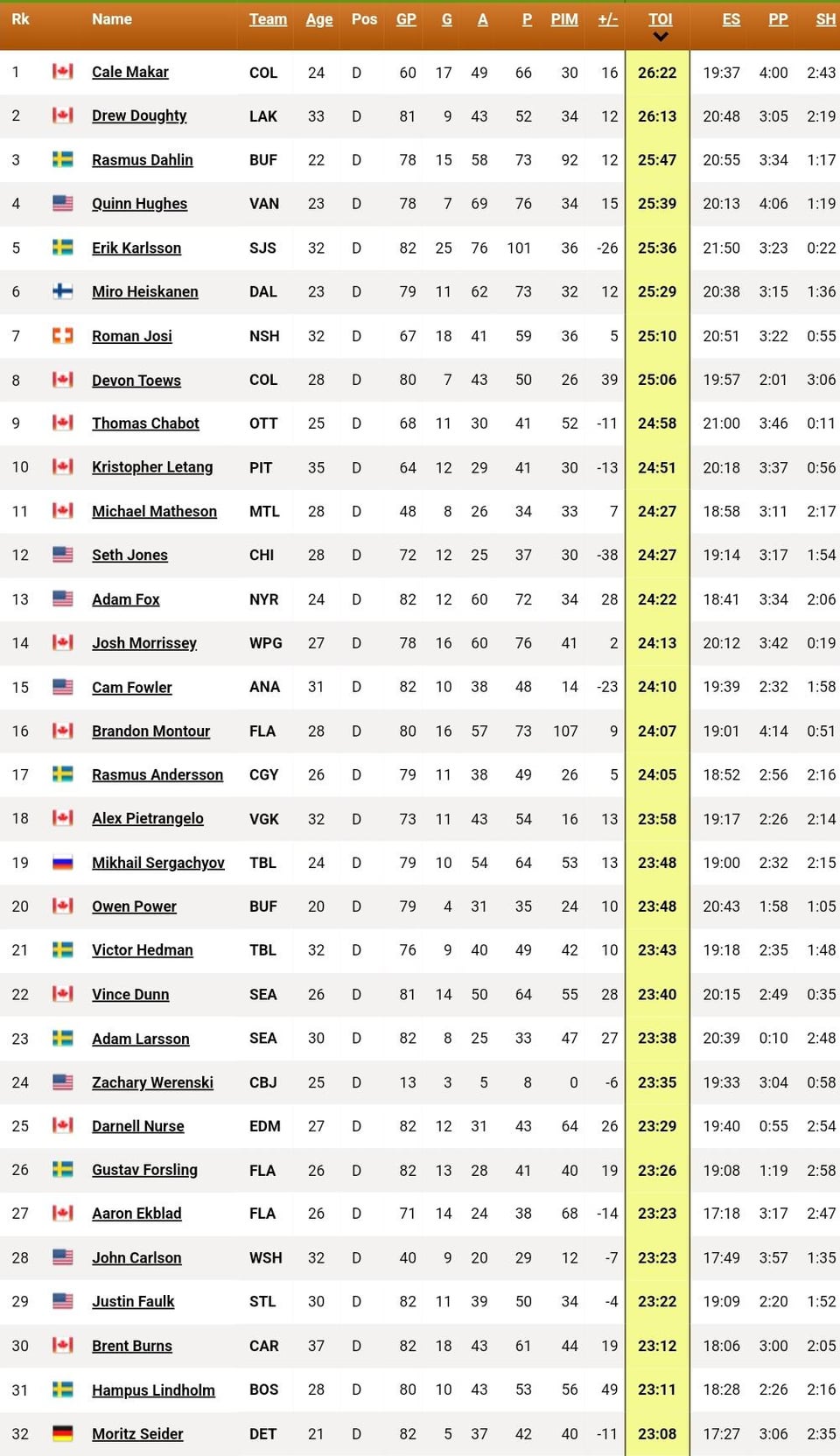 Man Colorado really leans heavy on their top 6. Lots of Avs forwards on this list