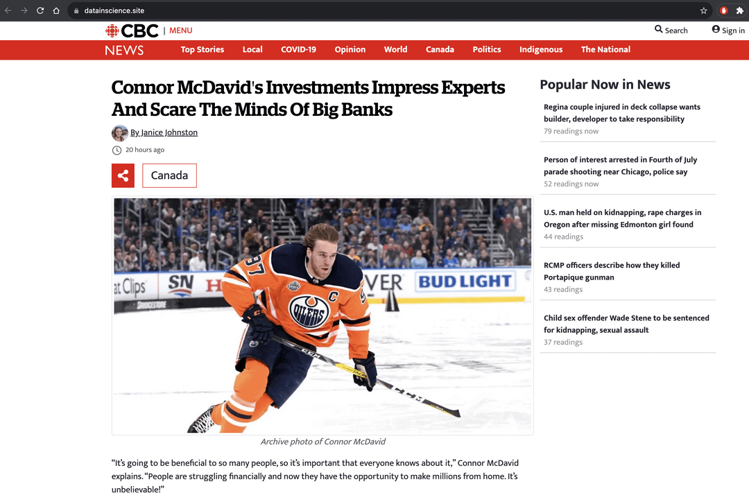 ah yes, “datainscience.site”, my favourite means of accessing cbc news