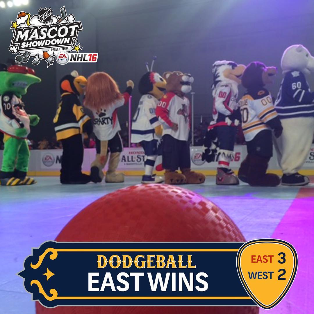 Et juste comme ça, les tables ont tourné. L'Est prend la tête du tournoi après que des stratégies audacieuses ont porté ses fruits dans Dodgeball. Ils joueront au hockey dans l’arène Bridgestone prochainement … #NHLFanFair