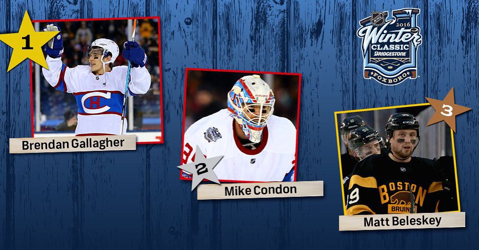 3 étoiles de #WinterClassic: 1. Brendan Gallagher 2. Mike Condon 3. Matt Beleskey HockeyHockey sur glaceHockeySurGlaceIce HockeyIceHockeyLA LNHLALNHLigue nationale de hockeyLigueNationaleDeHockeyLNHNational Hockey LeagueNationalHockeyLeagueNHLWinterClassic