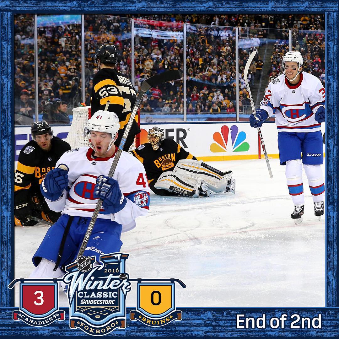 Après 2 périodes, les @canadiensmtl menaient 3 – 0. #WinterClassic HockeyHockey sur glaceHockeySurGlaceIce HockeyIceHockeyLA LNHLALNHLigue nationale de hockeyLigueNationaleDeHockeyLNHNational Hockey LeagueNationalHockeyLeagueNHLWinterClassic