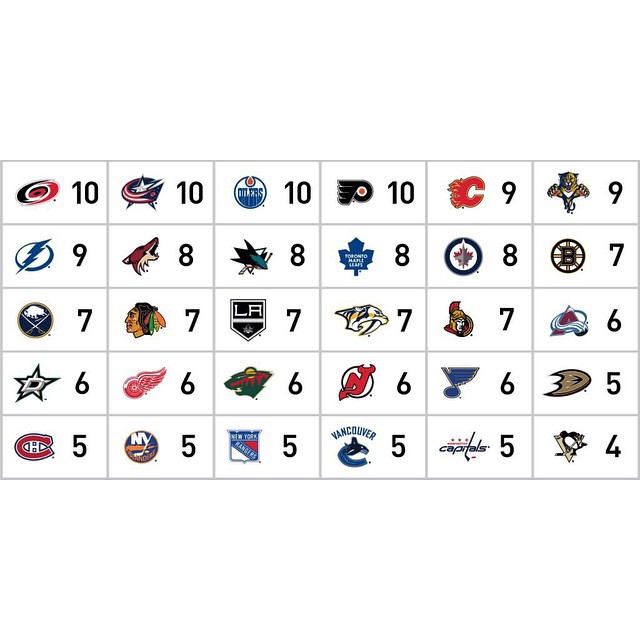Pour entrer dans le #NHLDraft 2015 – voici une ventilation du nombre de choix disponibles pour chaque équipe (en attente de tous les échanges).