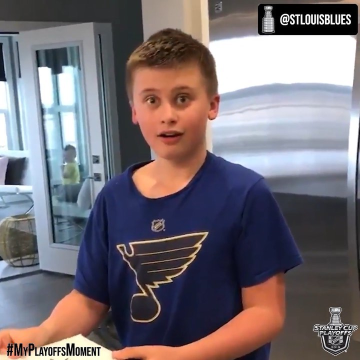 C'est ce que sont les éliminatoires #StanleyCup! Jayden, 11 ans, surpris avec des billets pour le # Game7 de ce soir. 🙌 (st @stlouisblues)