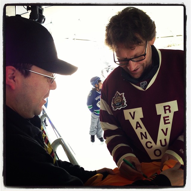 Le moment où ce fan a reçu l'autographe de Jyrki Lumme, alcan de @canucks, à l'événement #HeritageClassic à la patinoire Robson Square.