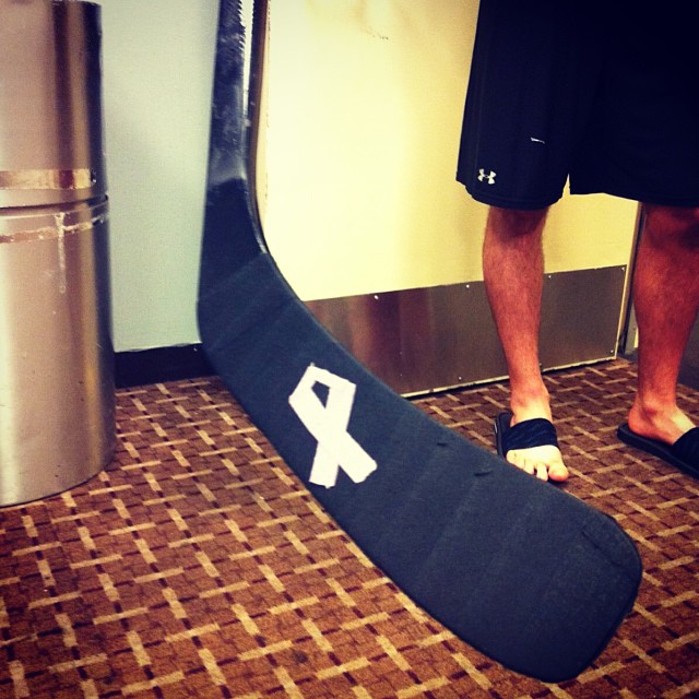 LNH: Le bâton de Vern Fiddler ce soir pour le moment où les #Stars organisent leur #HockeyFightsCancer …