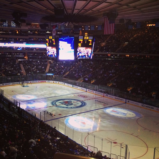 Les lumières sont allumées à Broadway pour le grand jeu #RivalryNight. #NYR vs #Bruins. Si vous n'avez pas encore syntonisé, vérifiez-le sur NBCSN. Qui va gagner?