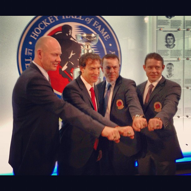 Les intronisés de #HHOF de cette année font une bling-bling ce matin. HHOFHockeyHockey sur glaceHockeySurGlaceIce HockeyIceHockeyLA LNHLALNHLigue nationale de hockeyLigueNationaleDeHockeyLNHNational Hockey LeagueNationalHockeyLeagueNHL