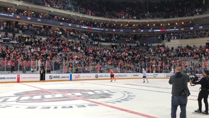 Tchèque ces fans! Prague est sur ses pieds pour Jakub Voráček, @kampfdavid et @ kubalda18 après un grand match #NHLGlobalSeries. (🎥 @nhleurope)