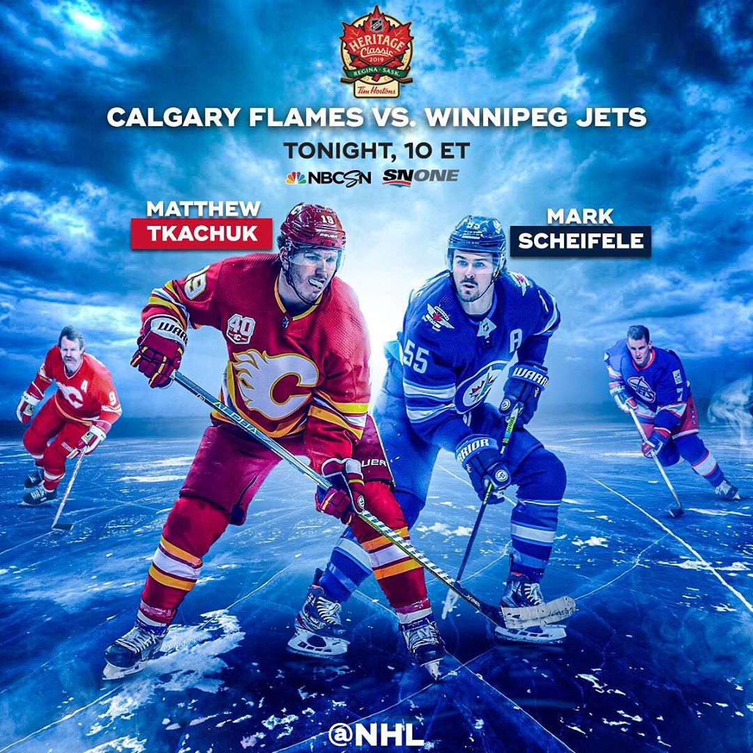 Les @nhlflames et les @nhljets sont sur le point de s'affronter dans les @timhortons de 2019 de NHL #HeritageClassic ce soir à 10 HE sur @nhlonnbcsports et @sportsnet.