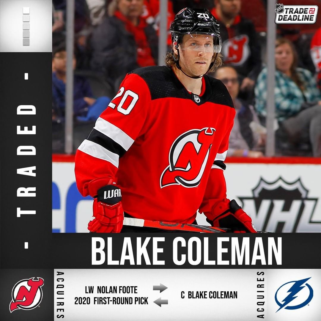 Les @njdevils font des mouvements en envoyant Blake Coleman (@ bcoles25) au @tblightning. #NHLTradeDeadline HockeyHockey sur glaceHockeySurGlaceIce HockeyIceHockeyLA LNHLALNHLigue nationale de hockeyLigueNationaleDeHockeyLNHNational Hockey LeagueNationalHockeyLeagueNHLNHLTradeDeadline
