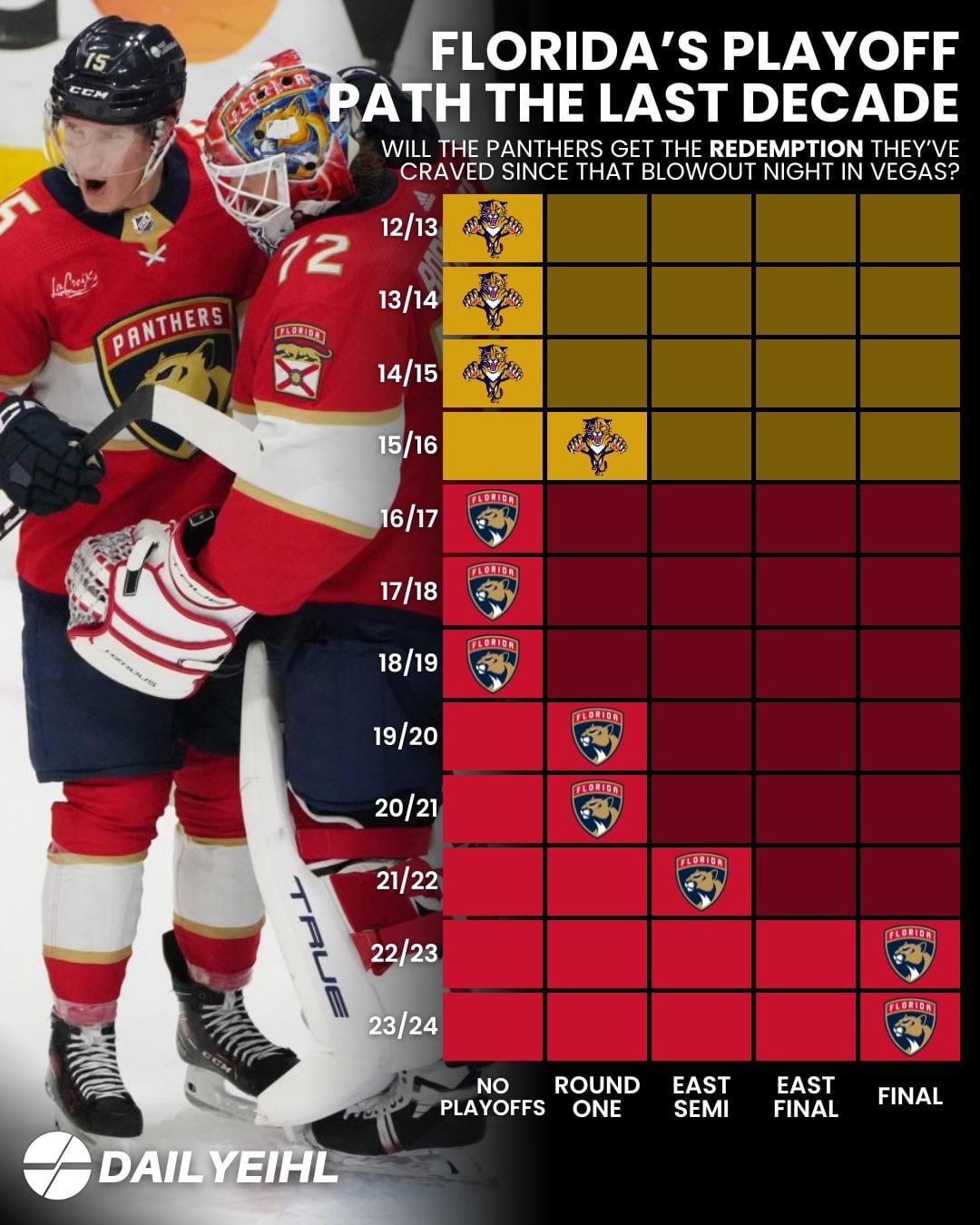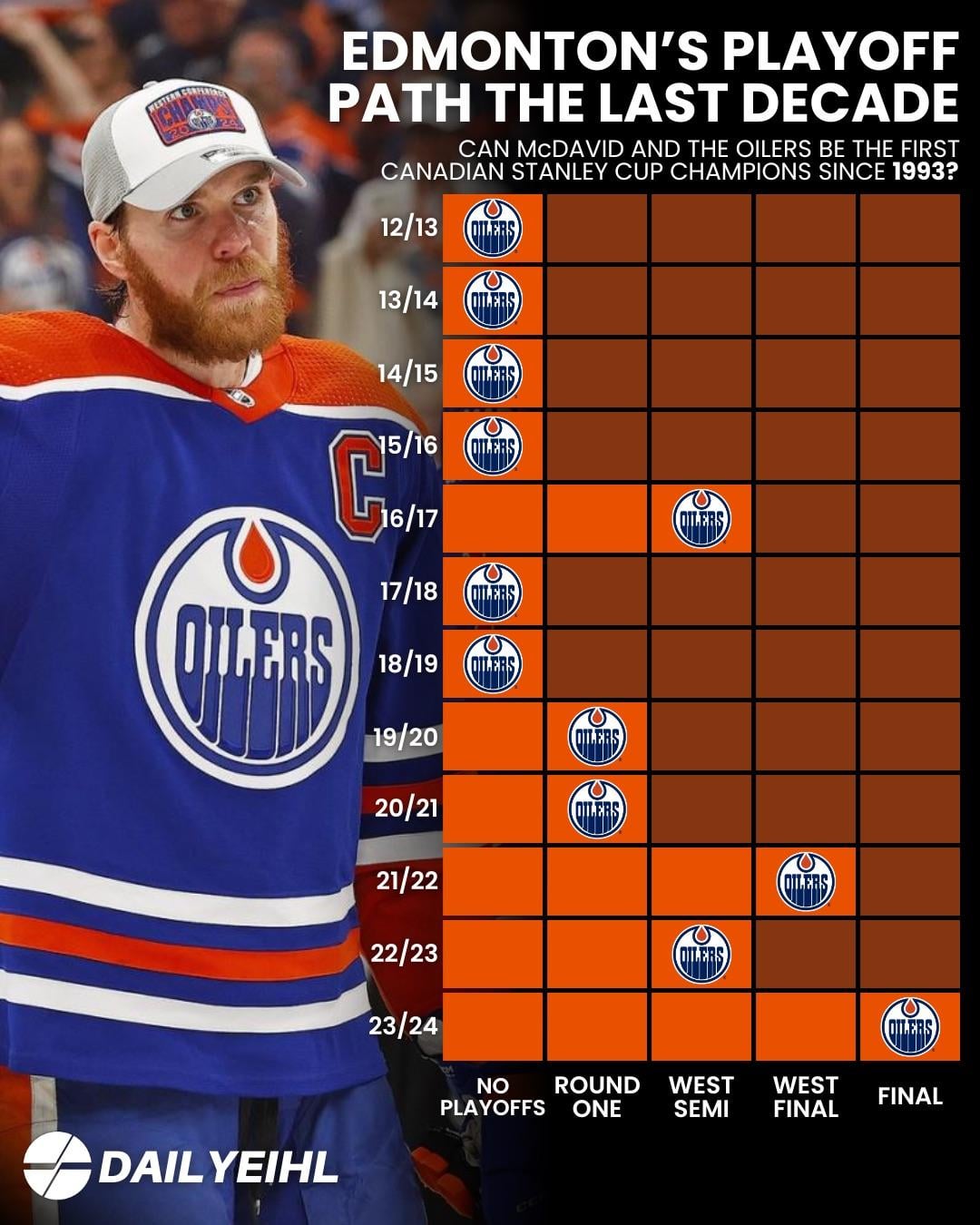 If Edmonton loses, that’ll be the third year in a row that they’ve been knocked out by the eventual cup champion (Colorado in 2022 and Vegas in 2023 were the previous 2).