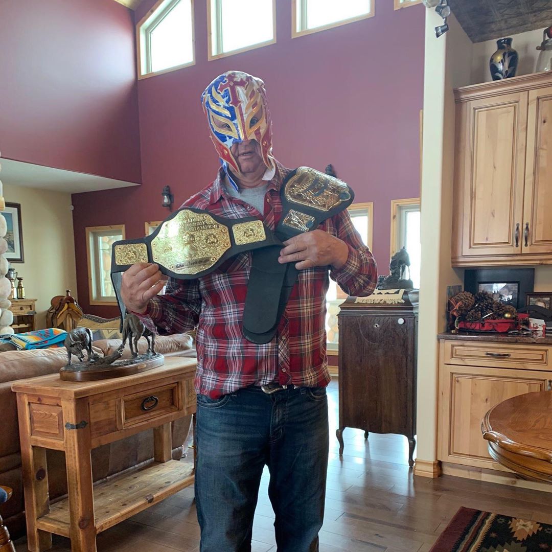 BOOYAKA! BOOYAKA! Darryl Sutter rend fier le roi 619, Rey Mysterio (@ 619iamlucha). #WrestleMania #HockeyAtHome