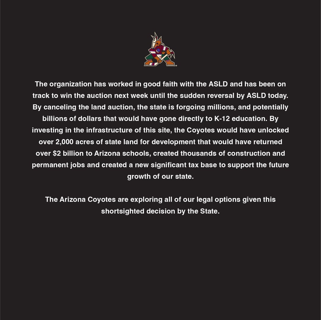 For AM to issue this release worded the way it is just looks bad. But it’s more of the same from his and his camp. AZ hockey will be better once he sells the naming rights to someone who truly wants to bring hockey back to the Valley.