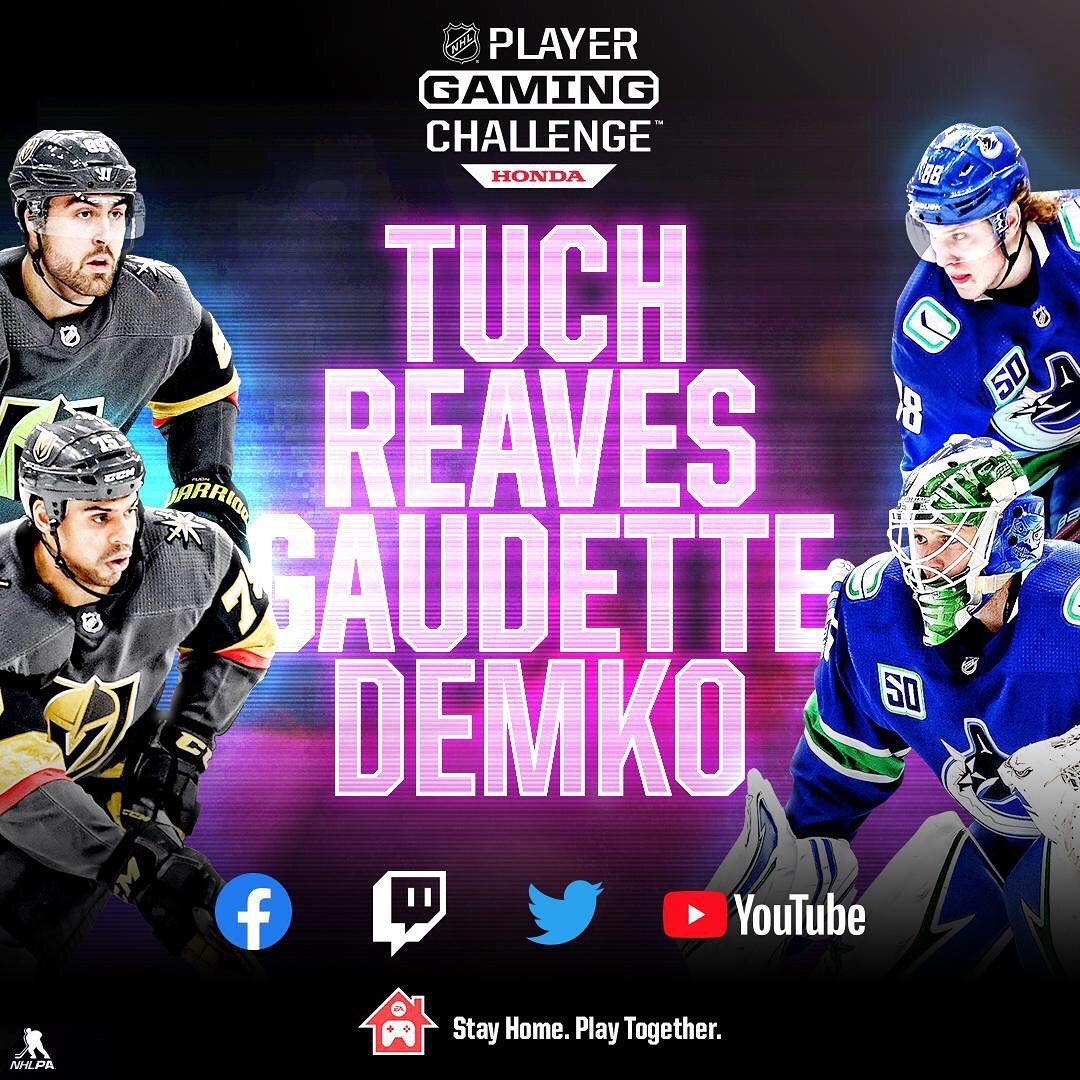 Le Défi du jeu des joueurs de la LNH se poursuit avec @ alextuch89 et Ryan Reaves (@ reavo7five) des @vegasgoldenknights contre Thatcher Demko (@ tdemko30) et Adam Gaudette (@hockey_gaud) des @canucks.