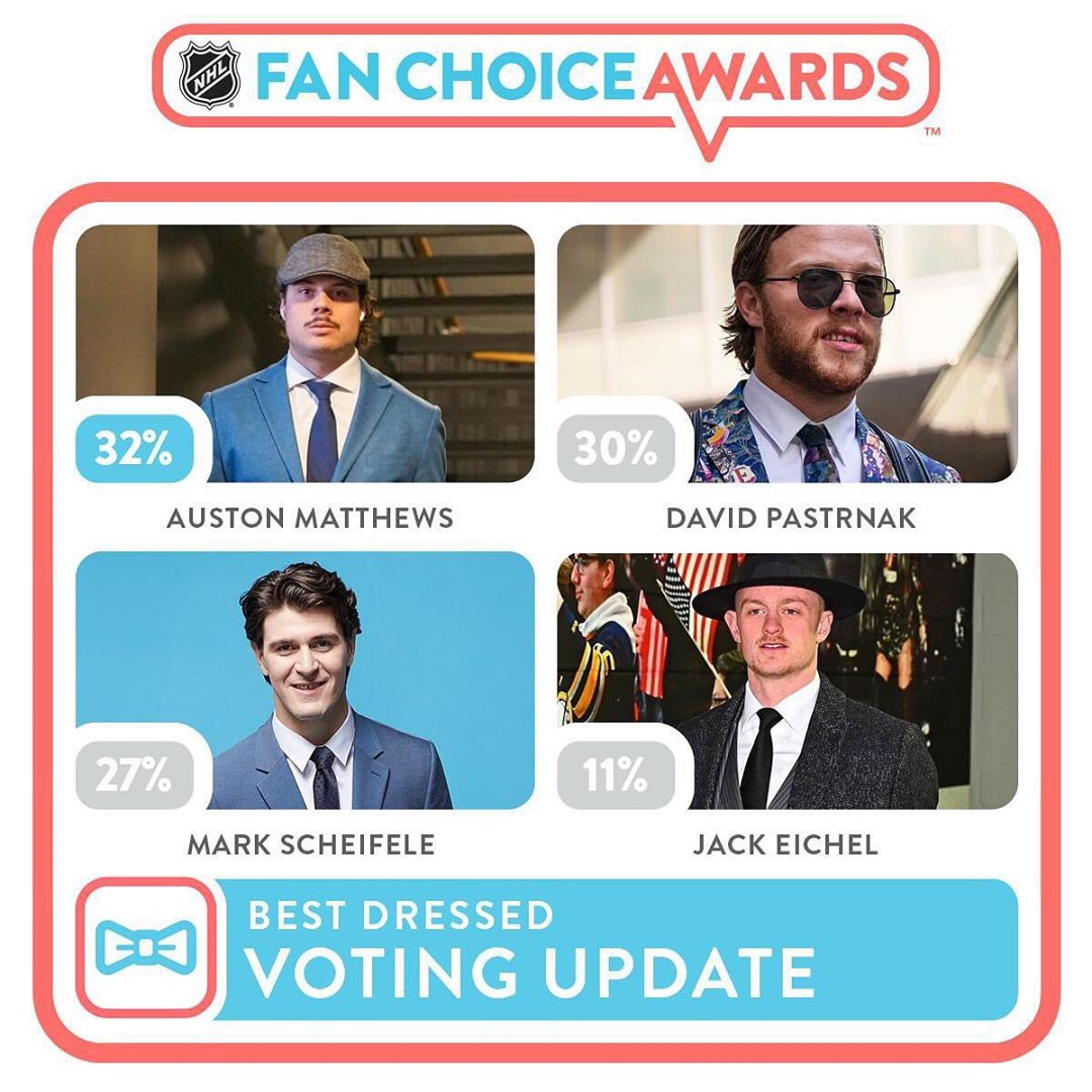 Oh mon Dieu, est-ce que c’est une course serrée entre @austonmatthews et @davidpastrnak pour la meilleure tenue! 😲😲 Mettez vos votes #NHLFanChoice MAINTENANT. LIEN DANS BIO 👆👆👆