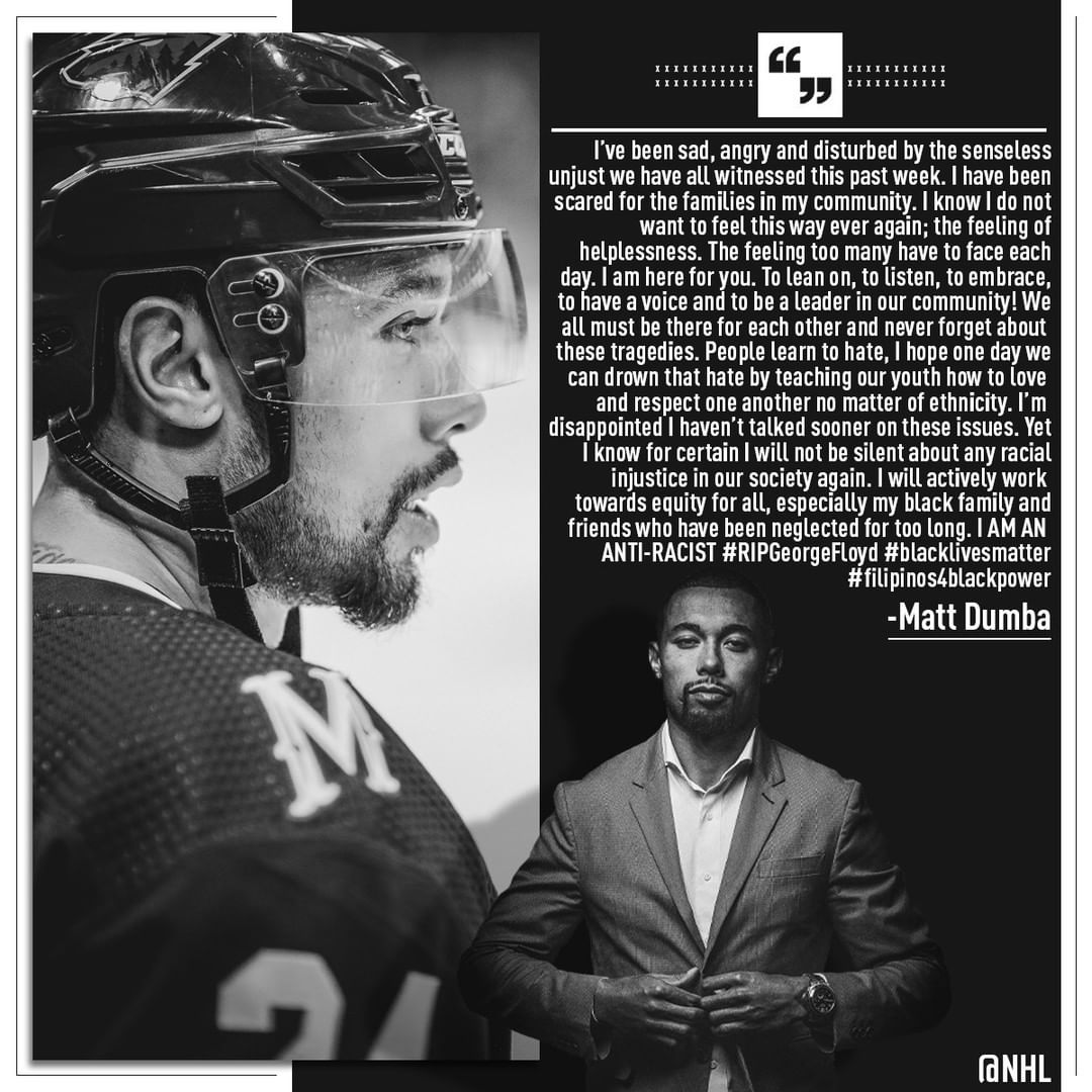 Message de @ matt.dumba sur #BlackLivesMatter. BlackLivesMatterHockeyHockey sur glaceHockeySurGlaceIce HockeyIceHockeyLA LNHLALNHLigue nationale de hockeyLigueNationaleDeHockeyLNHNational Hockey LeagueNationalHockeyLeagueNHL