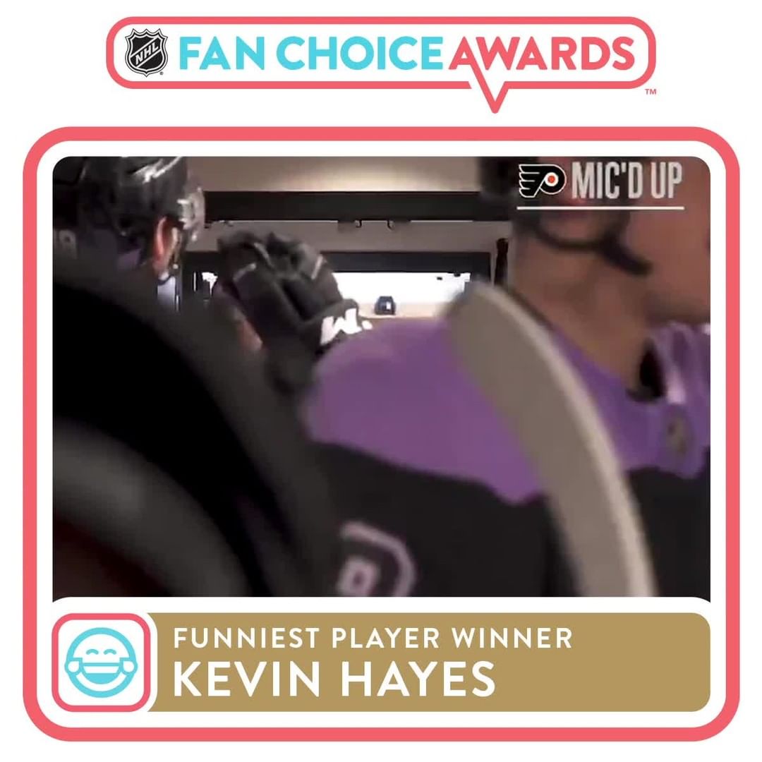 ALLER UNE FOIS! ALLER DEUX FOIS! KEVIN HAYES (@ kphayes12)! Il est votre gagnant pour le joueur le plus drôle des #NHLFanChoice Awards.