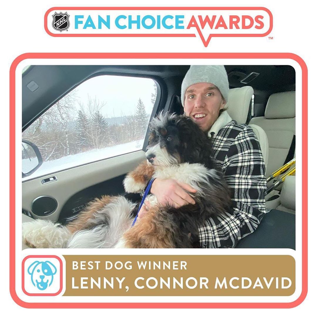 HEREEEEEEEE’S LENNY (@lenardthebernedoodle)! Le meilleur ami de Connor McDavid (@ mcdavid97) est votre gagnant #NHLFanChoice du meilleur chien.