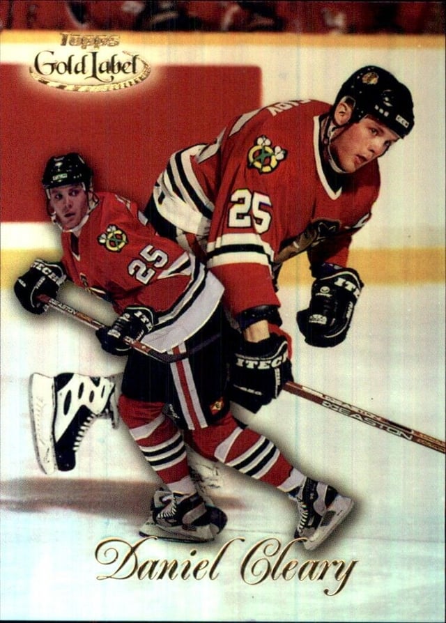 That Dan Cleary hockey card design makes it look like he is hip-checking himself.