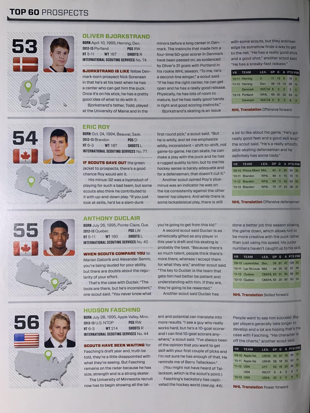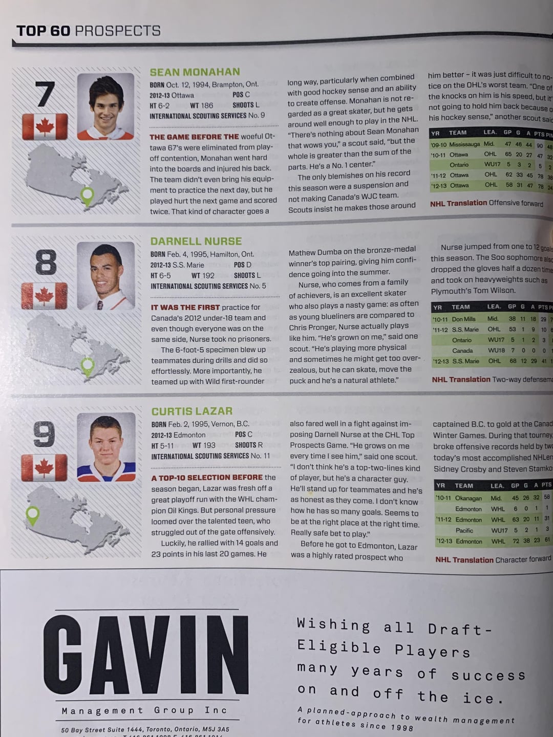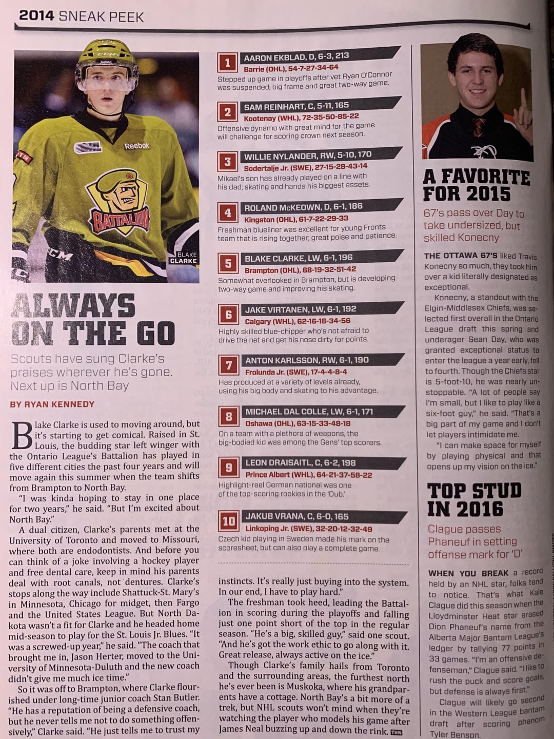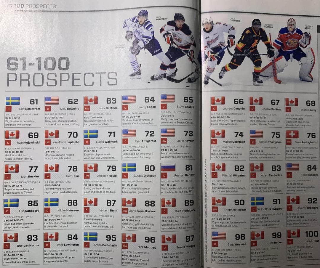 The « future » draft rankings on the last page are interesting. You’ve got a mix of stars who went top 10, players who dropped to the 2nd or 3rd round, and then Blake Clarke who has the big profile, was ranked 5th…and then dropped from 51 points to 12, went undrafted, and seemingly never played hockey after the OHL. Wonder what the story was there.
