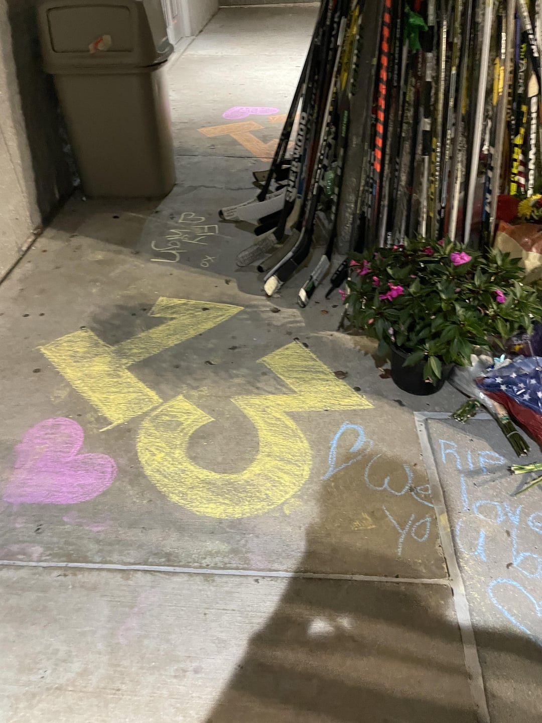 Photos : Images 1-3 : Mémorial à la patinoire Hollydell Image 4 : Photo de moi (chemise à flammes) avec Johnny après le tournoi Checking for Charity en 2016
