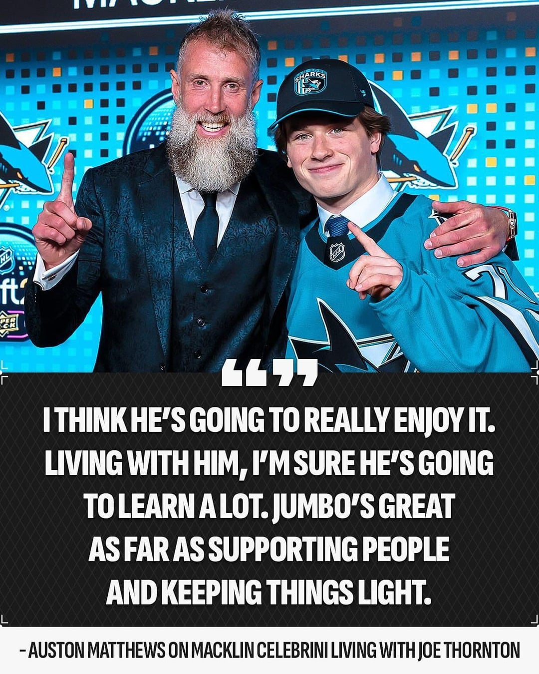 Lire la suite ➡️ ^ https://www.nhl.com/news/sharks-macklin-celebrini-to-live-with-joe-thornton-during-rookie-season