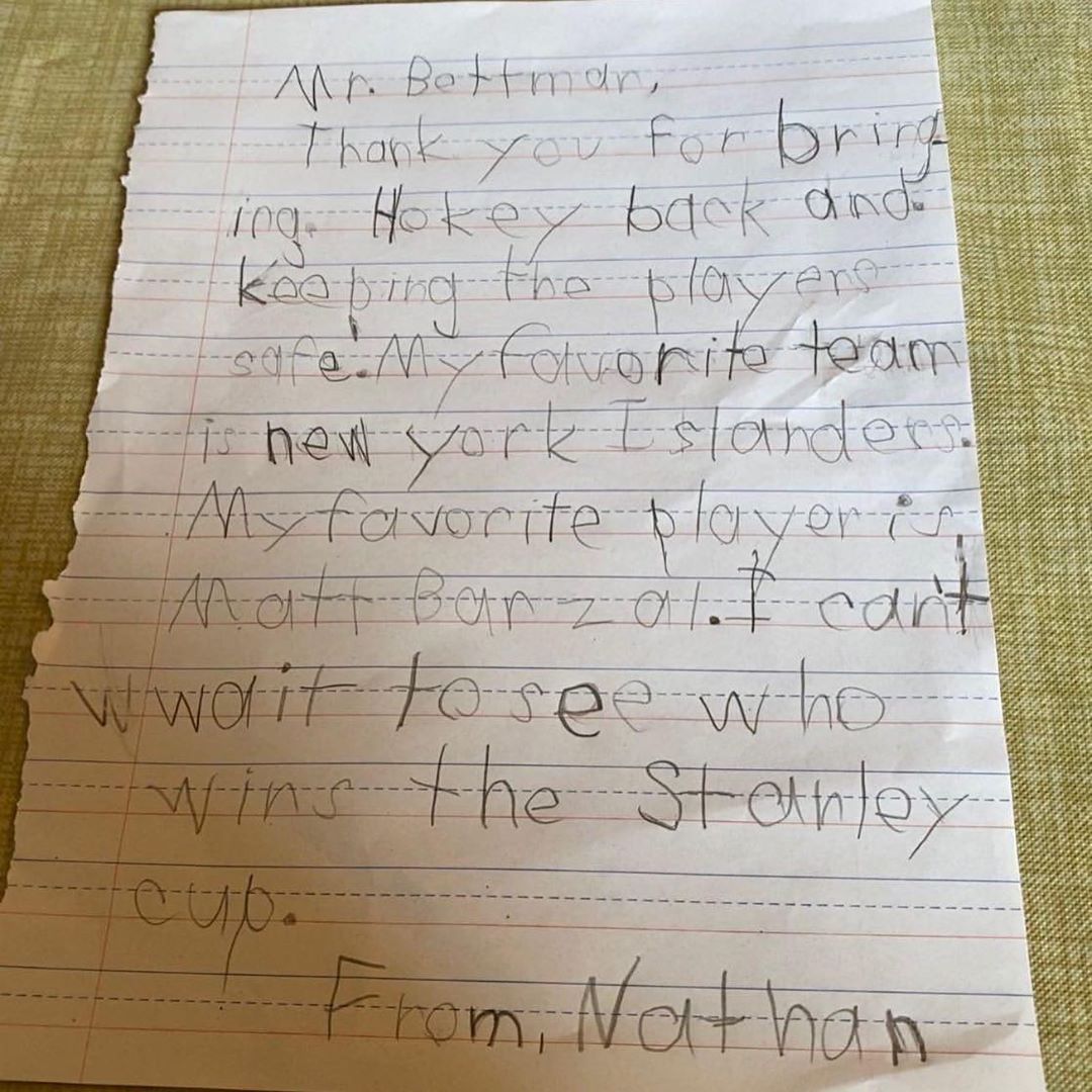 Nathan et Avery étaient tellement excités par le retour du hockey qu’ils ont écrit une lettre au commissaire Bettman. ❤️ #MyPlayoffsMoment
