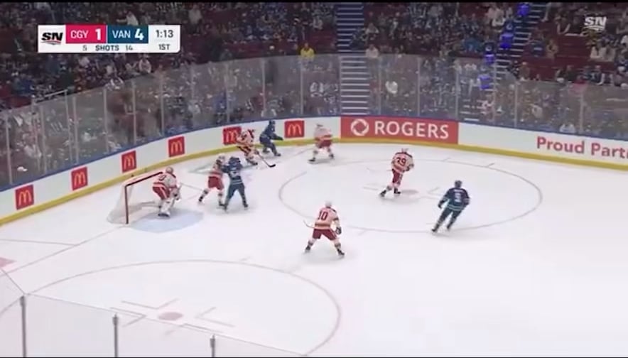 Flames salty about that Miller on Rooney hit. Miller finally answered the bell for a clean hit. Hopefully the next couple periods will have more hockey and less Flames bellyaching.