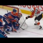 Normally I give the benefit of the doubt on these goalie interference calls, but he is entitled to that space if his feet are outside the crease which they are here until the defender puts pressure on him so I don’t see why this is called off. Even if he does hit Ersson’s glove which I don’t really see it’s due to being pushed into it last moment. I don’t know if they are just being very soft on the goalie interference this year or what, but this is a goalie interference I do not think they would have called last year. Actually thinking back it’s kinda funny this is a goalie interference now but that goal in playoffs that completely turned the tide for the Montreal vs Toronto playoff series where a player was directly in the way of Campbell making the stop wasn’t called goalie interference leading to the infamous Marner delay of game and another goal.