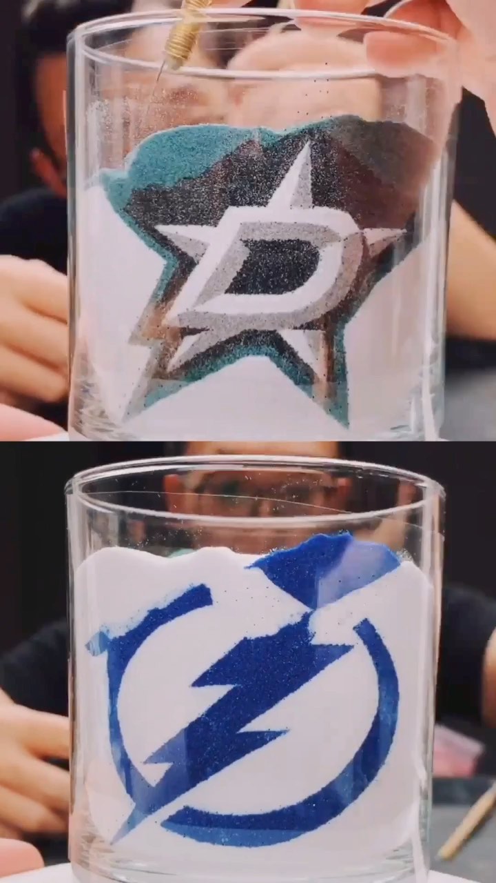 Les logos @dallasstars et @tblightning en sable. 😱 #MyPlayoffsMoment Ne manquez pas le sixième match de la #StanleyCup Final ce soir à 8 HE sur @nbc, @sportsnet et @tvasports. (🎨 @fallinginsand)