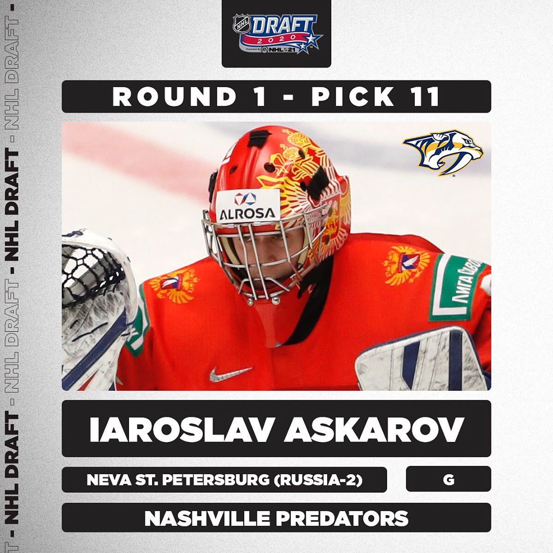 Iaroslav Askarov est pris au 11e rang du classement général par @predsnhl – le premier gardien à quitter le tableau! #NHLDraft