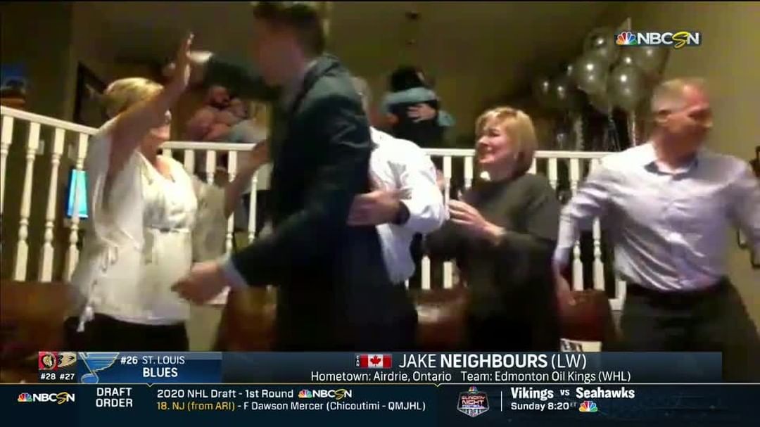 Comme vous pouvez le voir, la famille Neighbours a été POMPÉE pour voir Jake être sélectionné par les @stlouisblues. #NHLDraft