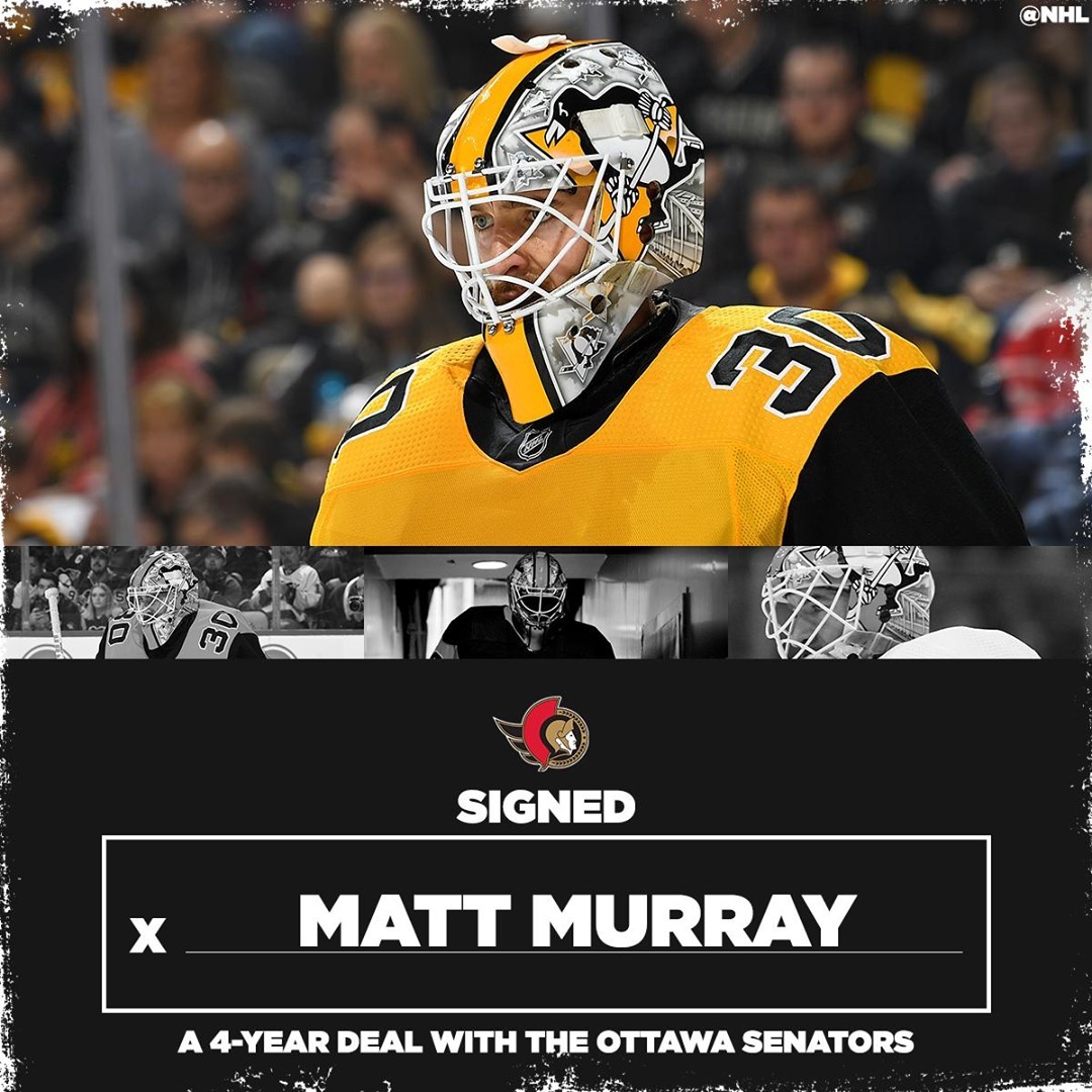 Matt Murray, nouvellement acquis, a signé un contrat de 4️⃣ ans avec les @senators. #NHLFreeAgency HockeyHockey sur glaceHockeySurGlaceIce HockeyIceHockeyLA LNHLALNHLigue nationale de hockeyLigueNationaleDeHockeyLNHNational Hockey LeagueNationalHockeyLeagueNHLNHLFreeAgency