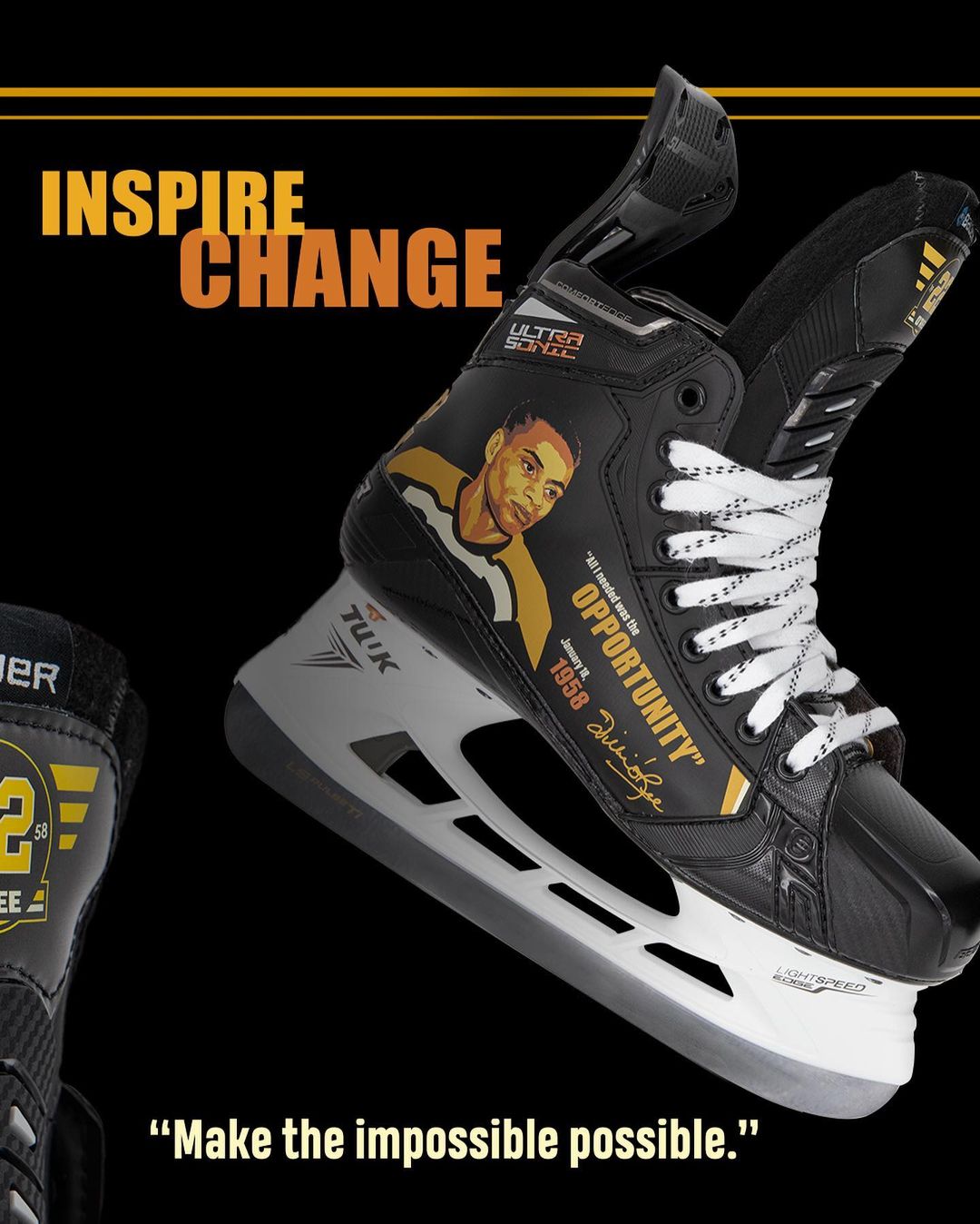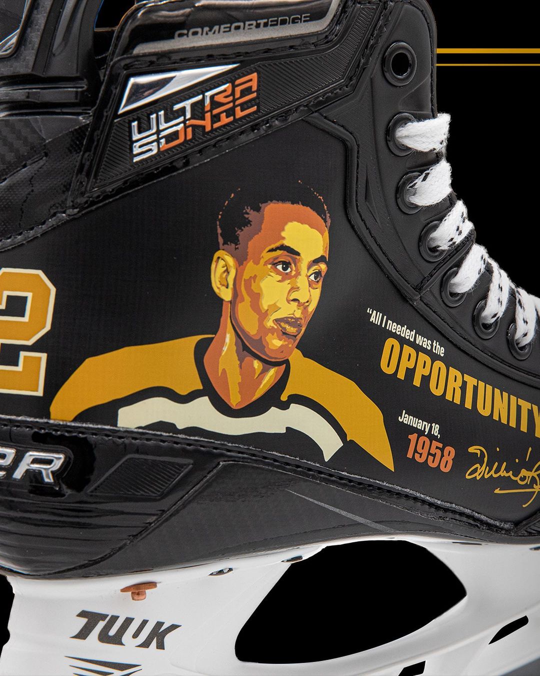 Pour honorer Willie O’Ree, @bauerhockey s’est associé à Wayne Simmonds, @ jtbrown23, Terry Smith Designs et l’agent de la LNH Eustace King pour concevoir des patins personnalisés. Les patins seront portés dans toute la LNH pendant le mois #LNHBlackHistory, puis mis aux enchères avec les bénéfices au profit de @blackgirlhockeyclub. En savoir plus sur NHL.com