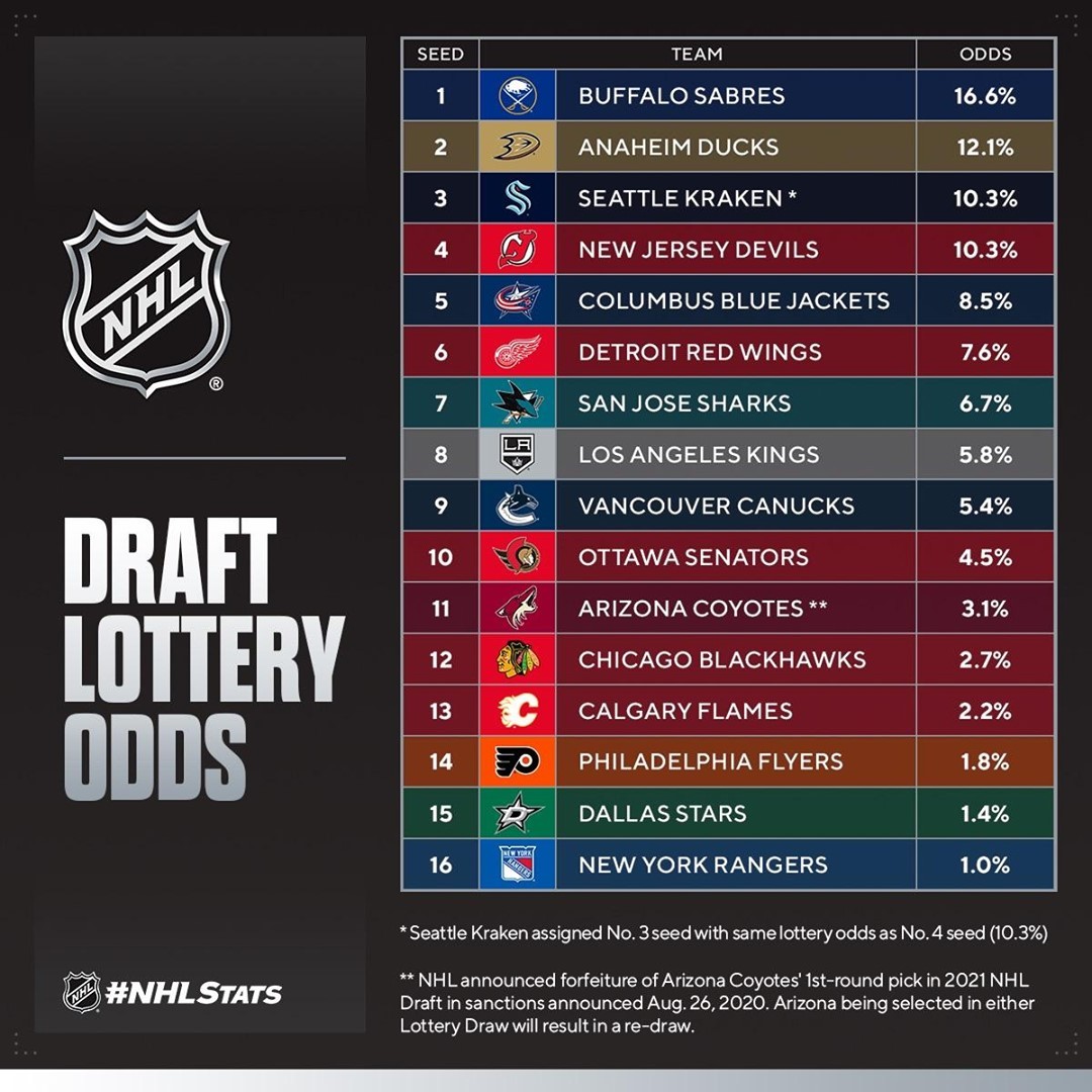 LNH: Les cotes de la #NHLDraft Lottery sont maintenant finalisées. Découvrez qui obtient le premier choix sur …