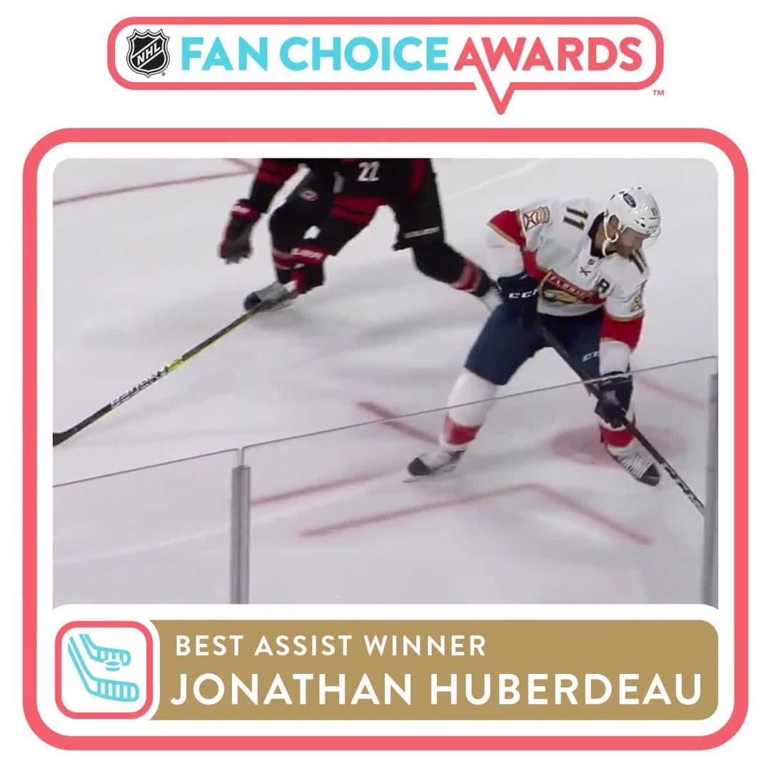 Merci à tous ceux qui ont voté pour les #NHLFanChoice Awards ! Jonathan Huberdeau (@jonnyhuby11) remporte le titre de Meilleur passeur pour cette beauté filante. 👏